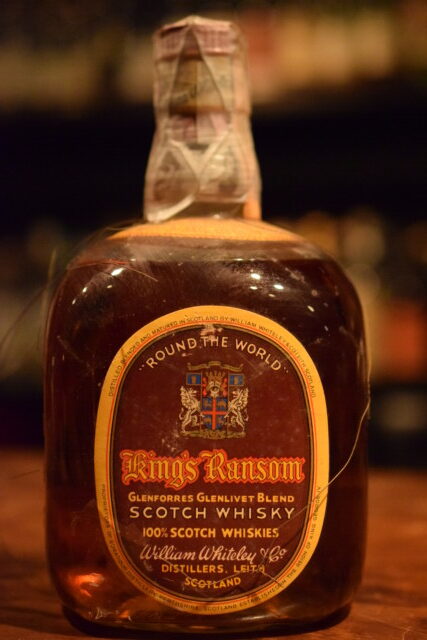 Comment: 1960年代流通デザインボトル。キングスランサムは”王の身代金”の意。 稀代の名ブレンダー、ウィリアム・ホワイトリーが最高のブレンデッドとして造り上げた銘酒で、キーモルトはエドラダワー。 シェリー樽でマリッジさせた原酒を船に乗せ、”ROUND THE WORLD(世界一周)”させて熟成させるという手間暇をかけた作り方が有名で、1945年7月、ポツダム会議の晩餐会にイギリスのチャーチル首相が持ち込んだウィスキーとしても有名な話がある。 味わいもコクとまろやかさが備わった素晴らしいまとまり感がある。見かけたら是非お薦めします。