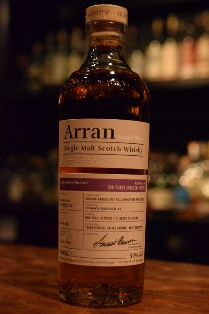 Comment: シグニチャーシリーズは4部作の限定シリーズでコレクション性の高いパッケージに焦点を当てるのではなく嗜好品として飲んで楽しんでもらうことを目的としたシリーズ。すべてのエディションはディスティラリーマネージャーのスチュワート・ボウマン氏が原酒を厳選し、ラベルには彼のお墨付きの印であるシグニチャー(署名)が記されている。今回のアラン ドゥエロ ディスカバリーはシグニチャーシリーズの第3弾で、上質な赤ワインカスクとフルーティでクリーンなアランが織りなす豊かな表情を楽しめる一本となっている。ファーストフィルおよびセカンドフィルのバーボンバレルで6年熟成後、スペイン最高峰ワインを輩出する銘醸地、リベラ・デル・ドゥエロの赤ワインの空き樽で6年間追熟した12年熟成の限定商品でノンチルフィルタード、ノンカラーリングでボトリングされているとのこと。